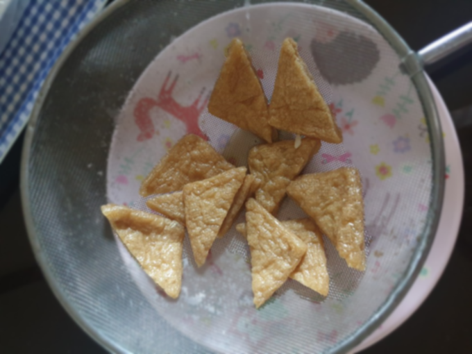 유부는 그냥 뜯어서 망에 걸러 국물을 뺀 채 두었습니다.
