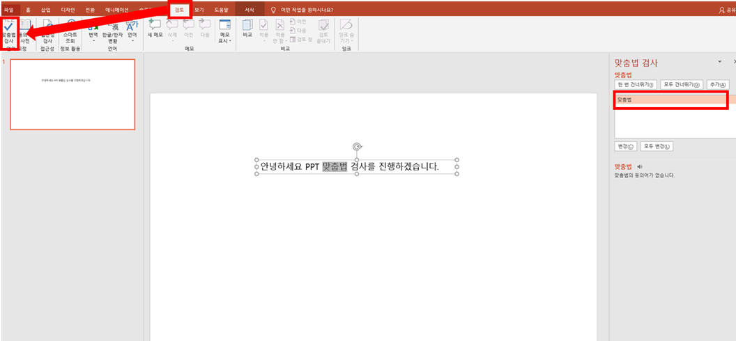 PPT 작성 마무리 단계에서 반드시 거쳐야하는 것이 '맞춤법 검사' 입니다.