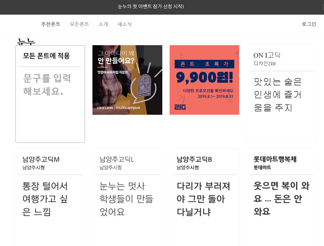 상업적으로 이용할 수 있는 무료 한글 폰트를 모아 놓은 사이트 눈누