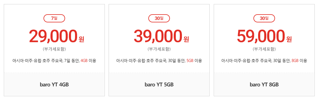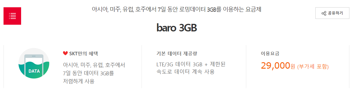 : 이처럼 오히려 7일치 요금제인 'baro 3GB' 가 가격이 더 저렴했습니다.