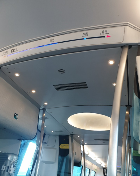AEL 내부 모습입니다. 무사히 AEL에 타시고 착석을 하셨다면, 각 칸에 끝 마다 위 사진 처럼 정류장 정보가 표시됩니다.