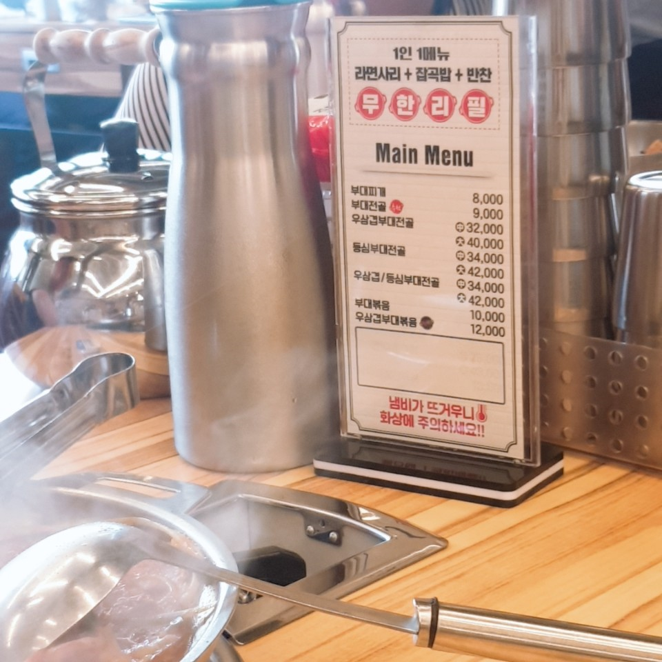 일반 부대찌개는 8,000원 / 부대전골은 9,000원으로 크게 비싼편은 아닙니다.