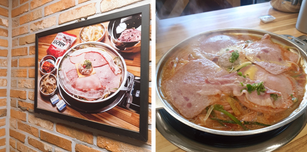 부대찌개는 햄이 2종류가 들어가고, 부대전골은 6종류가 들어간다고 합니다.