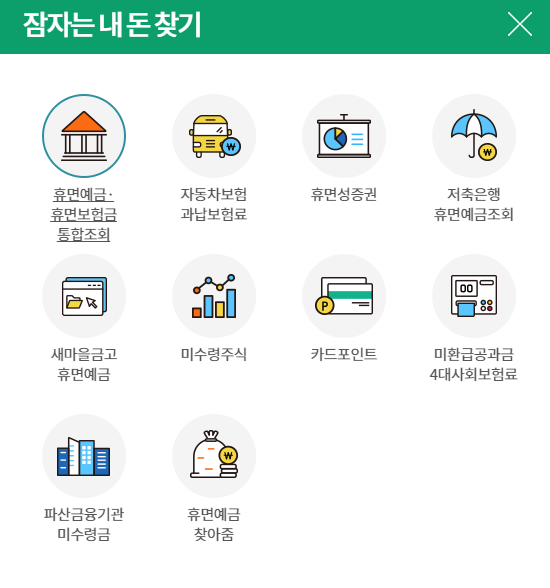 다음으로 유용한 기능은 '잠자는 내 돈 찾기' 입니다.
