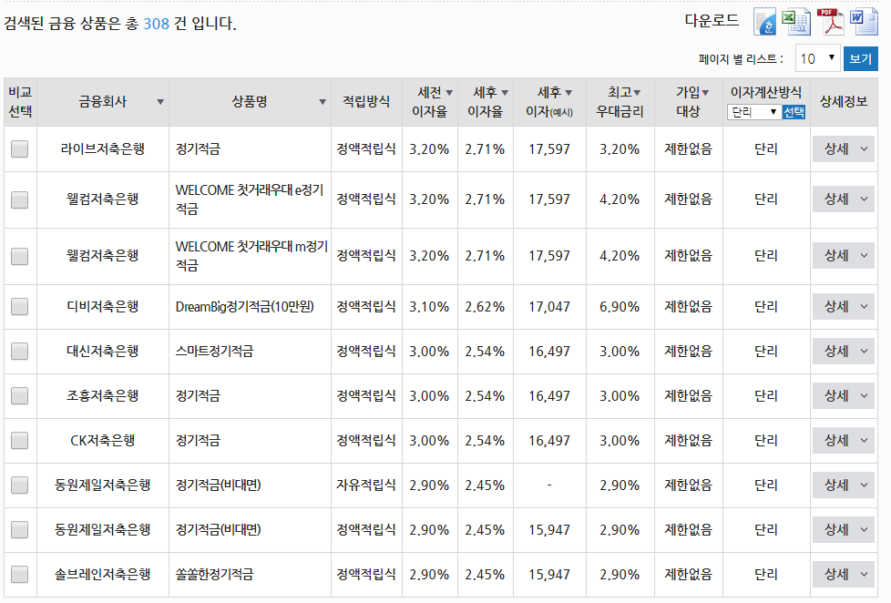 이제 이 중 마음이 가는 상품들 몇개를 추려서, 적금에 관련한 상세정보들을 잘 확인해본 후에 마음에 드는 상품으로 가입을 하시면 됩니다.