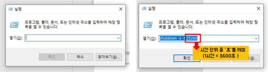 만약 2시간 뒤에 컴퓨터를 종료하고 싶으시면 3600x2 = 7200 을 쓰시면 되고,