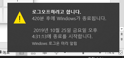 이 메시지가 뜬다면 종료 예약을 성공적으로 하신겁니다 :)