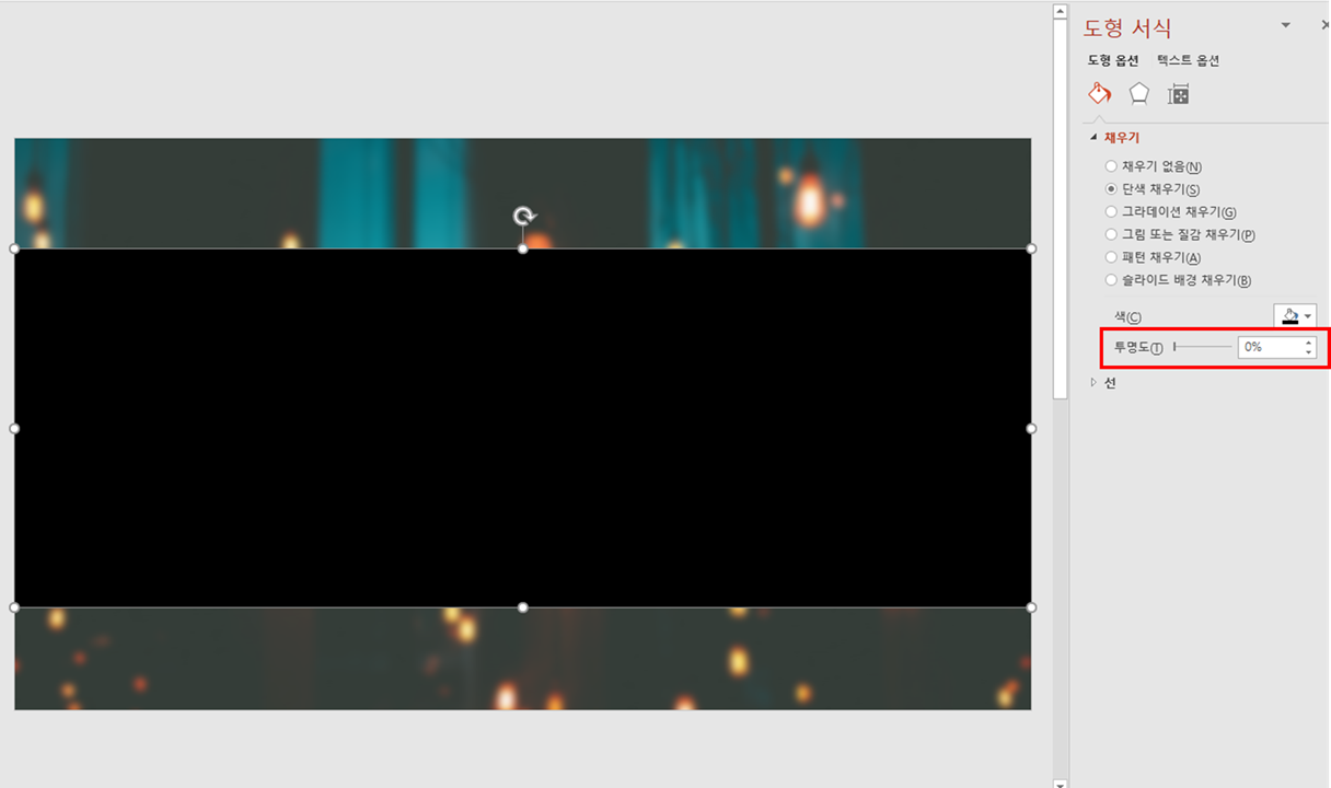 배경 이미지 위에 투명도를 설정한 도형을 덧씌워 강조효과를 높여보도록 하겠습니다.